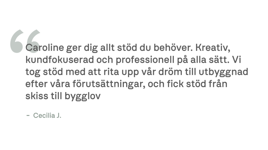 Oavsett om ni har en komplett idé eller om ni bara är nyfikna på vilka möjligheter som finns för just ert boende, så löser vi det! Vill ni veta mer om mig och hur jag arbetar kan ni läsa mer här.