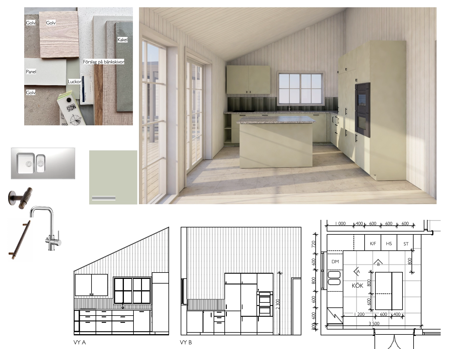 Efter att utformningen stod klar skickade kunden ritningen till ett husföretag som sedan justerade måtten på fönster och väggar en aning efter deras egna system. Markarbeten påbörjades vintern 2025/26 och huset beräknas stå klart under 2026. Jag fick även i uppdrag att ta fram en rumsbeskrivning där jag angett kulörer, material och all fast inredning så som kök- och badrumsinredning, garderober och klädhängare.