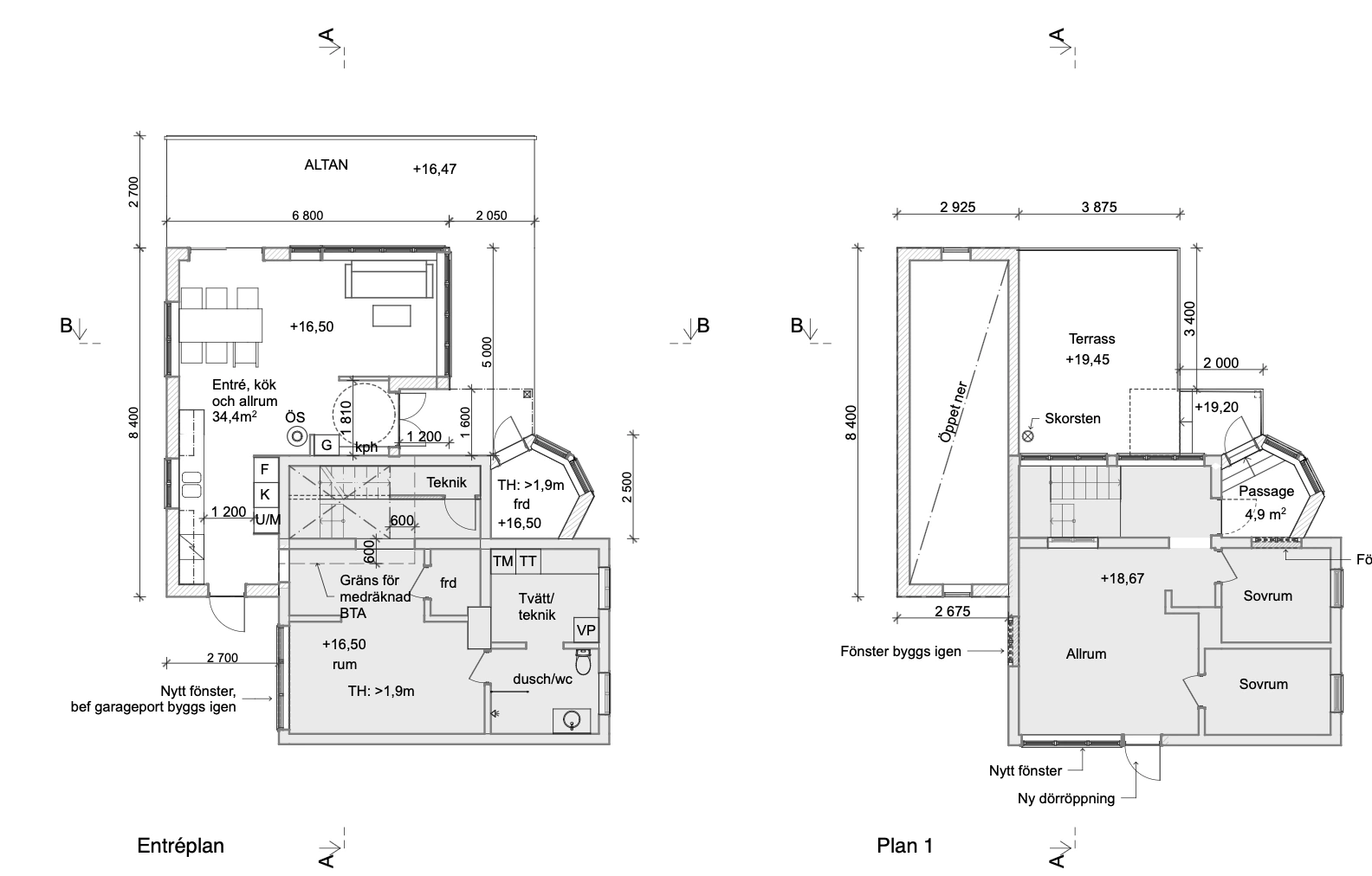 Entrén och köket har nu flyttat ned till markplan vilket underlättar för tillgängligheten och kontakten mellan inne och utemiljön. Huset ska ges en ny fasad i sekelskiftesstuk med fina trädetaljer. Med parets skicklighet i färg och inredning kommer det här bli helt fantastiskt när det står klart i 2026!